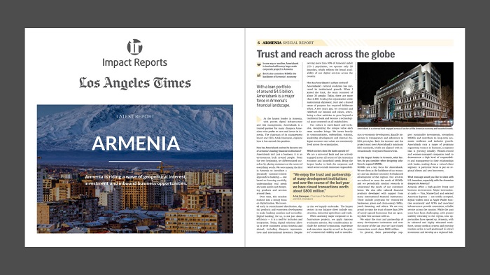 Ամերիաբանկը` միջազգային հեղինակավոր Los Angeles Times թերթում