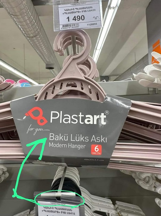 «Բաքվի շքեղություն» անունով ապրանք «Երևան Սիթի»-ում․ այդ անունով պլաստիկ կախիչների լուսանկարը տարածվում է համացանցում։